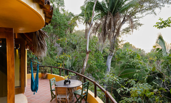 The ocean view from this Casita will take your breath away. You'll never want to leave the rooftop deck . . . perfect for star gazing, whale watching and sipping margaritas! A honeymooners favorite. This casita is our most enclosable room option for those that are new to the jungle experience.